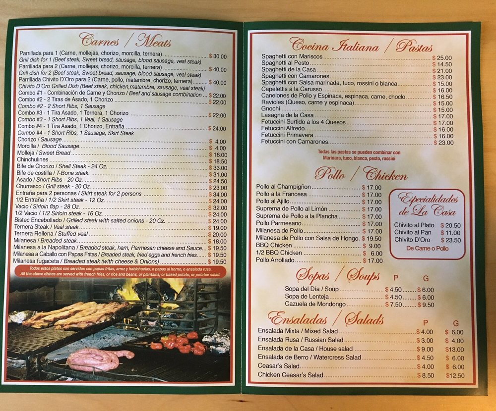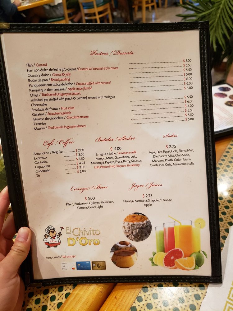 El Chivito D’ Oro is a Latin American steakhouse located in Jackson Heights, NY. Known for its delicious Uruguayan cuisine, the restaurant offers a variety of options including meat platters, empanadas, and skirt steak. Customers praise the generous portions and flavorful dishes, with highlights such as blood sausage, sweetbreads, and skirt steak. Reviews mention excellent service and a cozy ambiance, making it a great spot for a wholesome meal. With options for vegetarians and a range of beers and wines, El Chivito D’ Oro is a neighborhood staple that delivers consistently delicious food at moderate prices. Don't miss out on the savory sandwiches and the house chimichurri sauce that elevates the flavors. Enjoy a taste of Uruguay in the heart of New York City at El Chivito D’ Oro.